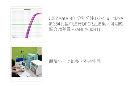 可進行1μl微量分注,進行384 well QPCR。